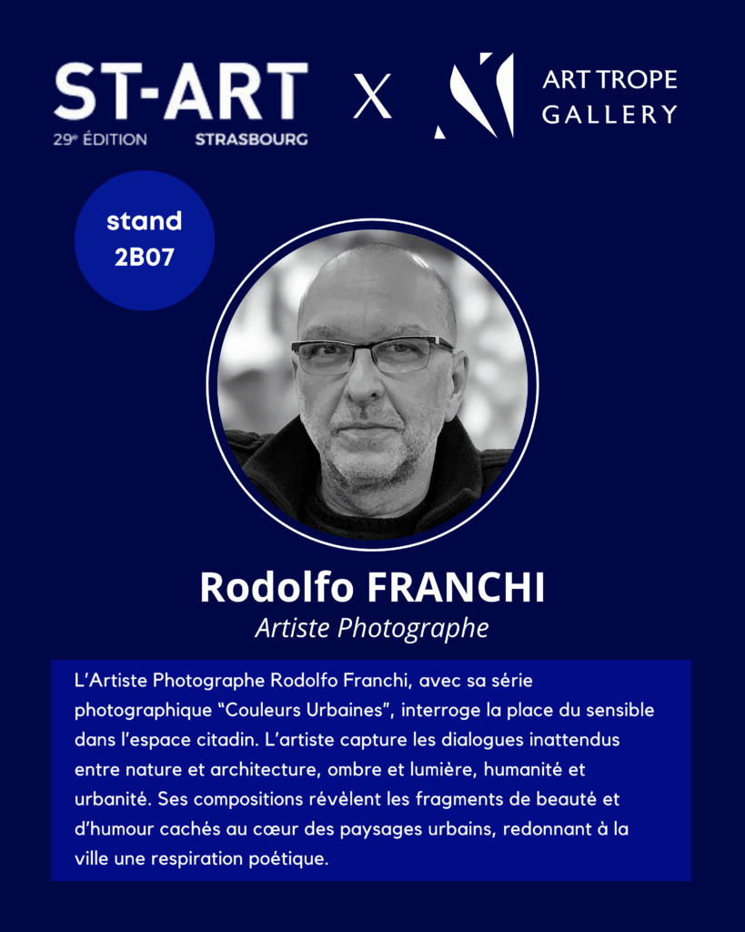 L’Artiste Photographe Rodolfo Franchi, avec sa série photographique “Couleurs Urbaines”, interroge la place du sensible dans l’espace citadin. L’artiste capture les dialogues inattendus entre nature et architecture, ombre et lumière, humanité et urbanité.