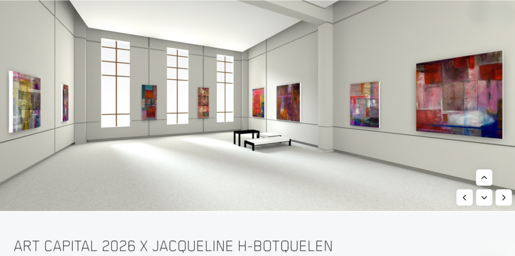 We are delighted to support our Multi-Talented Artist JACQUELINE H-BOTQUELEN for her participation in Art Capital 2026 with her series « Camera Scura : Pentimenti, Shadows, Murmurations », under the majestic glass roof of the Grand Palais in Paris, from February 13 to 15, 2026, through two major exhibitions: